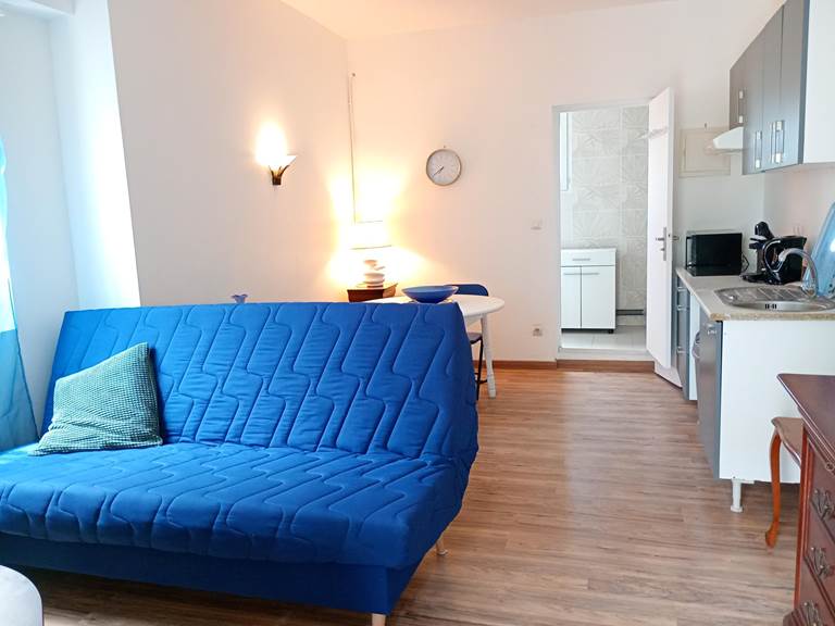 Bienvenido a este acogedor estudio, ideal para una escapada relajante o un viaje de negocios. Apreciará su acogedor ambiente con toques de azul océano, su elegante decoración y, sobre todo, su soleada terraza privada, perfecta para un café por la mañana o un aperitivo por la noche.